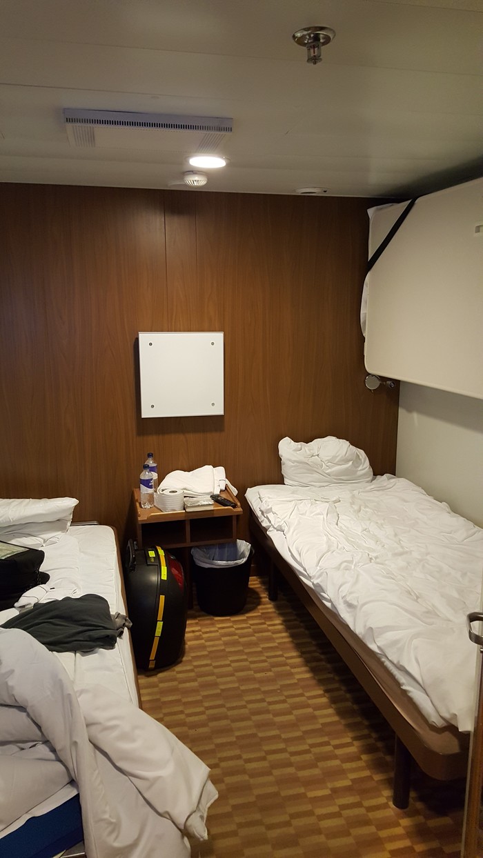 Сверху на открытой палубе едут фуры,кстати — водителям фур выделена отдельная палуба,девятая.Если владеете русским и базовым английским,а также хотите послушать веселые байки и просто отдохнуть в хорошей компании — рекомендую с ними познакомиться,гарантировано получите море новых впечатлений!На их палубе есть отдельная сауна,которая в два раза больше той что сверху,у них своя прачечная если вам приспичит постирать,в релакс зоне стоят несколько больших телевизоров и есть икс бокс 🙂